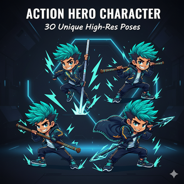 Action Hero Character – 30 Unique High-Res Poses